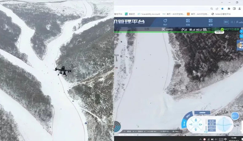 復亞智能無人機全自動飛行系統將無人機的實時畫面直播在指揮中心,并且可以在指揮中心遠程操控,實現真正的“無人化巡檢”,提升巡邏效率,降低現場巡邏隊員的巡邏難度,增加巡邏發現問題反饋問題的時效性,還可以進行對事故的拍照取證,事故隱患的遠程喊話警示。云頂滑雪場將無人機巡邏的方式作為巡邏的輔助手段,部署復亞智能無人機全自動系統,將數字化、智能化、信息化的管理理念落到實處,即時處理突發狀況,為游客安全滑雪保駕護航。